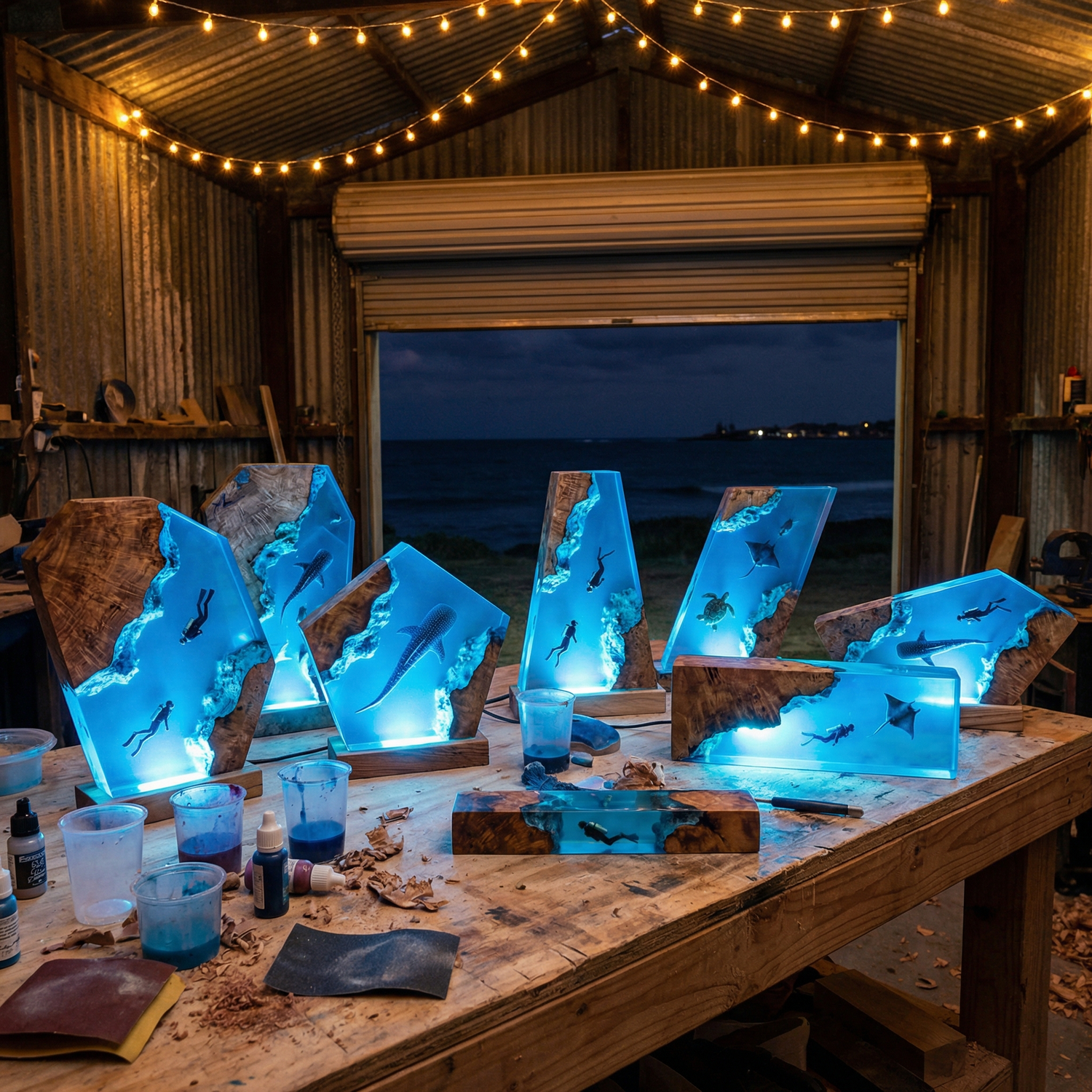 Entworfen mit dem Fokus auf Tiefe, Bewegung und Licht, fängt jedes Stück einen Moment des Ozeans ein — vom Brechen einer Welle bis hin zum Leuchten unter der Oberfläche. Jedes Element wird sorgfältig bedacht, um ein Kunstwerk zu schaffen, das sich anfühlt, als gehöre es an die Küste und nicht in eine Fabrik.